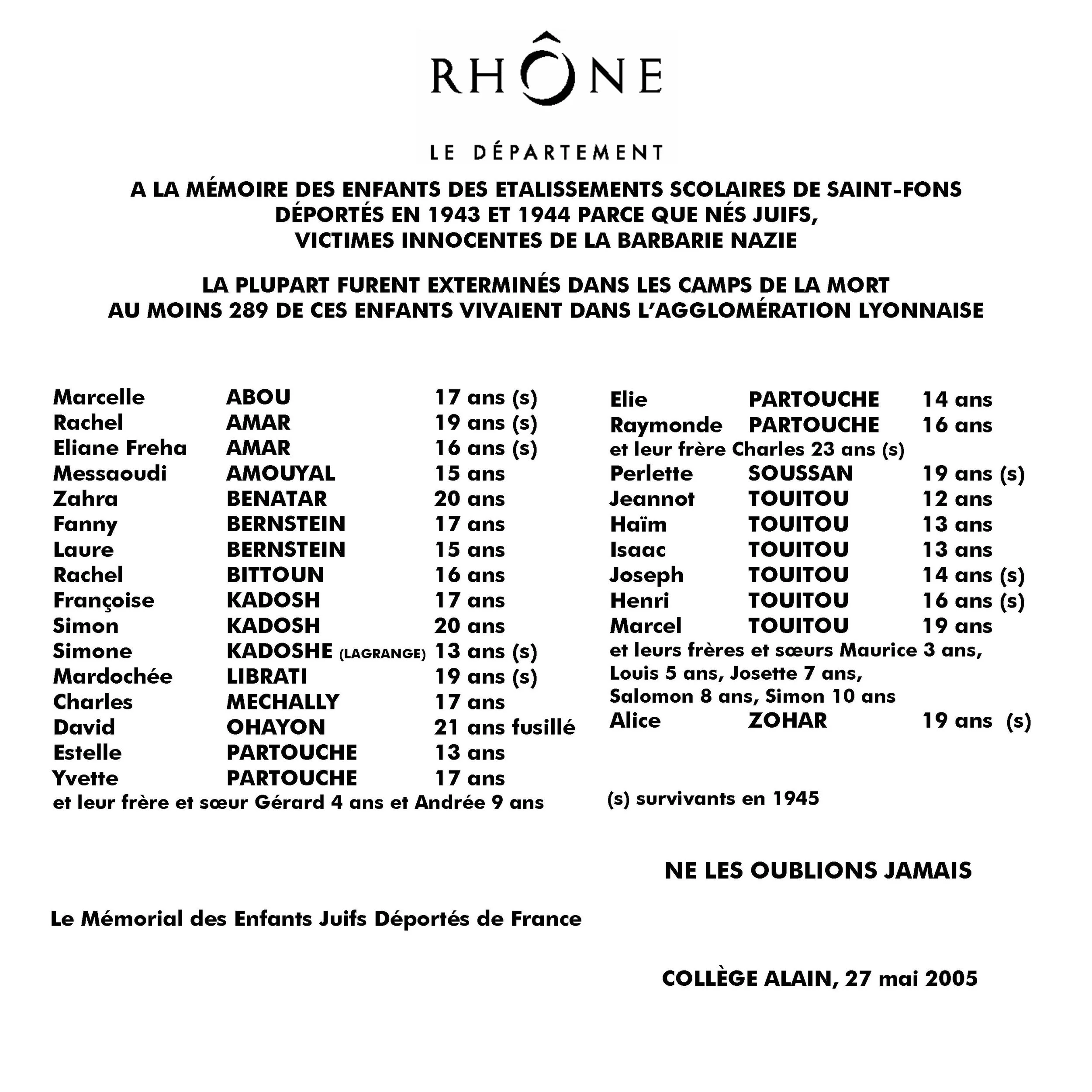 Une plaque porte son nom au collège Alain de Saint-Fons. Le collège Simone Lagrange porte son nom 15 Rue des Jardins, à Villeurbanne (69100).