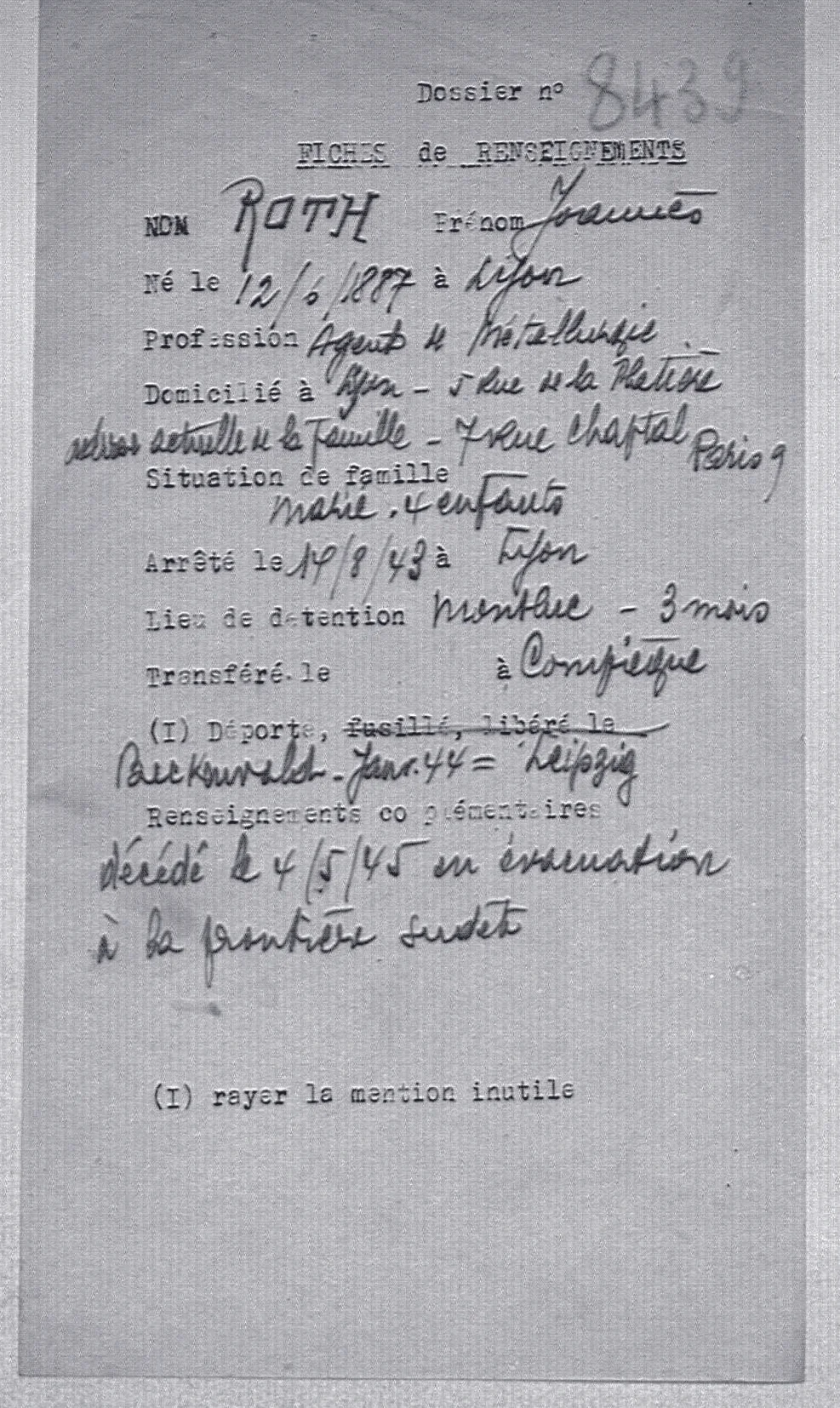 Informations diverses : Lycée Edouard Herriot. Les Anciennes Elèves ont retrouvé sa soeur M Angelergues-Roth et un de ses frères Paul Roth qui vivent à Paris.