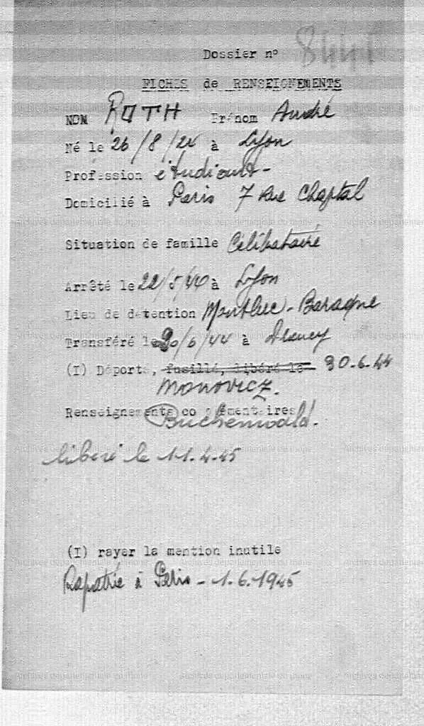André ROTH est née le 26/08/1924 à Lyon en France.