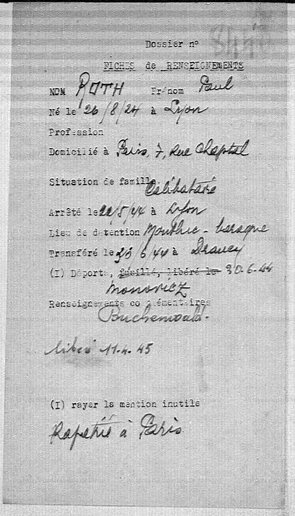 Paul ROTH est née le 26/08/1924 à Lyon en France.