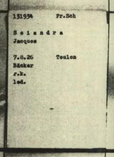 Informations diverses : “Jacques Sciandra” de son vrai nom Jean Isaac (Icek) Lewkowicz est né le 10/02/1923 à Sosnowiec (Lodz, Pologne). Il est le fils de Jacob Joseph Lewkowicz (1890, Lodz, Pologne - 1946, Reims) et de Leah (Laja) Lewkowicz (née Wajsmark, 15/03/1895, Bedzin, Pologne - 1961, Reims). Il est le frère aîné de Rachel (Ruchla) épouse Leszczynski (1924, Pologne - 2010, Reims), de Bella épouse Ostroff (02/09/1925 - 2016, Philadelphie, USA), de Simon Liez (né Lewkowicz) (06/01/1929, Paris - 04/07/2007, Philadelphie, USA), de Max (28/02/1931, Paris - 22/12/2020) et d’Émile (14/01/1936, Reims - 1984, Pennsylvanie, USA). Nb. Il n’est pas le frère de Roger (né le 6/12/1930 à Toulon). La famille résidait 58 rue Ruinart de Brimont à Reims. Réfugié en 1940 avec ses parents à Périgueux (24). Jacques est élève au Lycée du Parc à Lyon (entrée 1940, en classe de 4e A2B2 en 43/44). Il vient de l'externat Saint-Joseph (fils de Marcel, industriel. Adresse : 2 place Puvis de Chavannes ?). Arrêté à Lyon, pour faits de résistance en mai 1944 sous le faux nom de Jacques Sciandra. Déporté à AUSCHWITZ, le 03 ou 04/08/1944; transféré à SACHSENHAUSEN, le 29/01/1945; transféré à MAUTHAUSEN, le 16/02/1945; transféré à AMSTETTEN, le 23/03/1945 (Source: Monument Mauthausen III), où il décède.